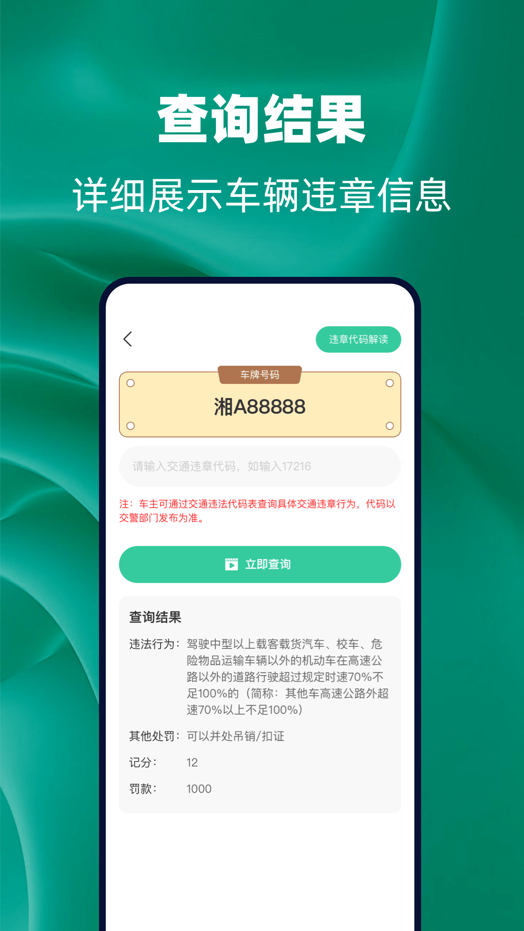 是一款服务于广大车主用户,提供全国违章代码查询服务,是车主必备违章查询工具。违章信息准确,违章数据更新及时,让您查违章快准。